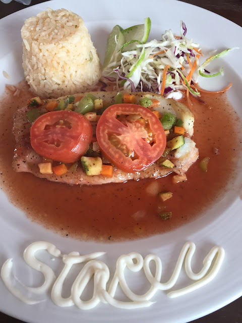 As soon as we left Playa Mia on the bus, within 5 minutes it started to torrentially rain. Ha! We were one of the few prepared with ponchos and an umbrella. We scooted our way to the shops right at the pier, did some shopping, then walked to the ship (In our ponchos with day bags, umbrella and shopping bags with boxed breakables in tow!) It was wonderful to be back on board. We went to our stateroom to dry off and change.